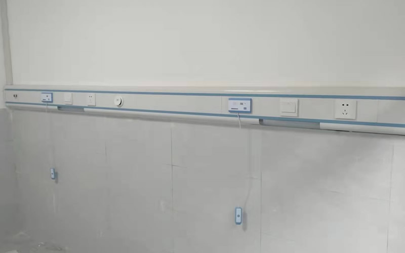 病房床头吸氧装置选用优质铝合金设备带上安装氧气终端、呼叫器分机、电源开关插座、床头灯。