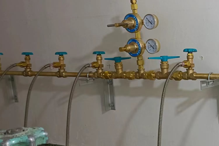 2、医用氧气汇流排间不应与医用空气压缩机、真空汇或医用分子筛制氧机设置在同一房间内。输送氧气含量超过23.5%的医用