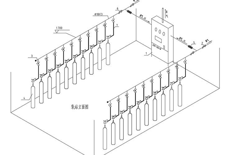 4、医院氧气站供应源,必须设置应急备用电源,由院方负责接入。