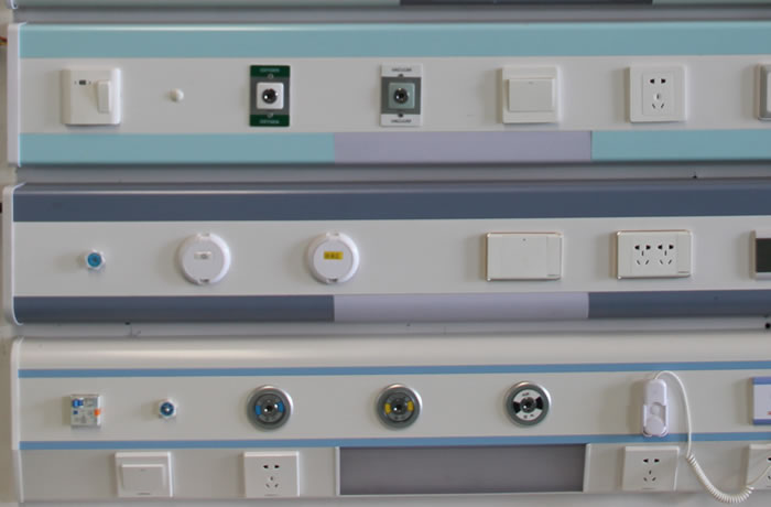 当管道和阀门安装合适,并且墙面装修完毕,便开始安装医用气体设备带和气体终端等设备。