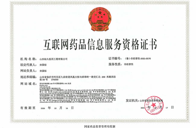 作为医用中心供氧公司网站和普通不需要前置审批文件的企业网站不同,因为医用中心供氧主要用于医院等医疗机构,也属于医疗器械,做医用中心供氧网站ICP备案和公安网备案时都需要添加前置审批文件,才能顺利通过备案,所以需要办理《第二类医疗器械经营备案凭证》和《互联网药品信息服务资格证书》。