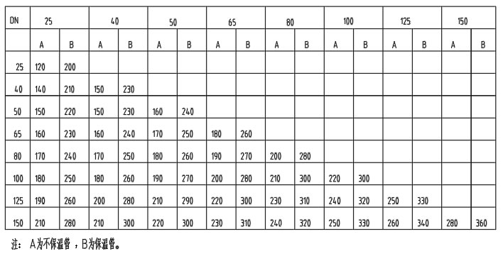 27.3 管道沿墙、柱铺设,管道轴线离墙或柱的距离按管径一般规定为: