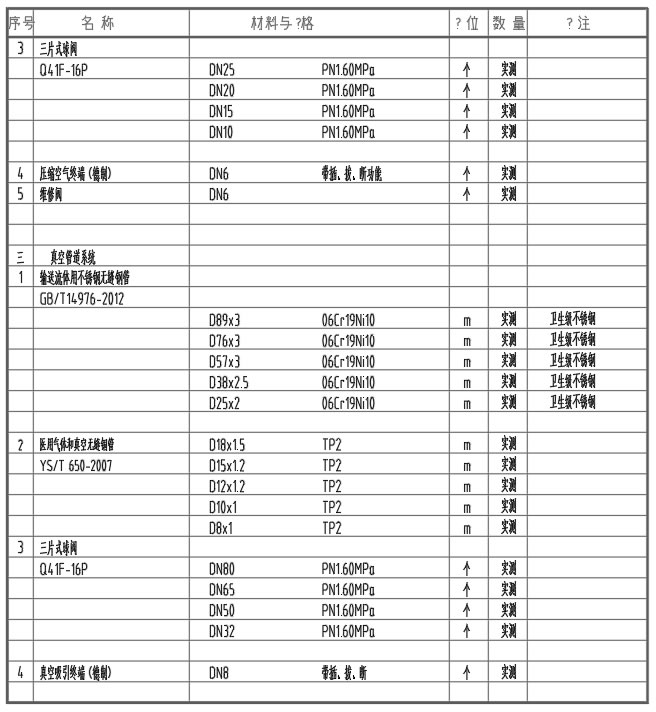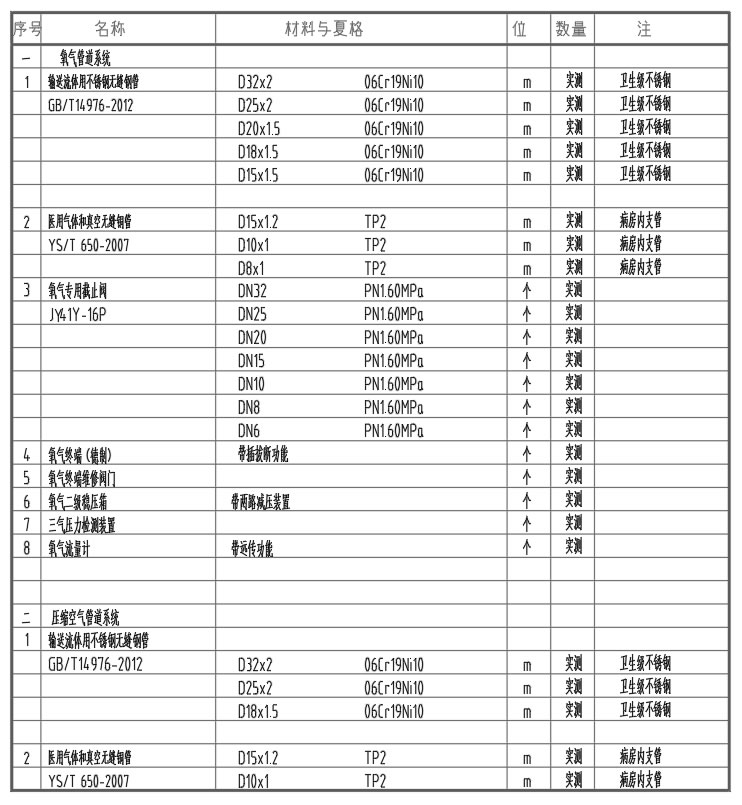 9. 医气管道主干管均采用输送流体用不锈钢管,进入病房内的支管均采用铜管。