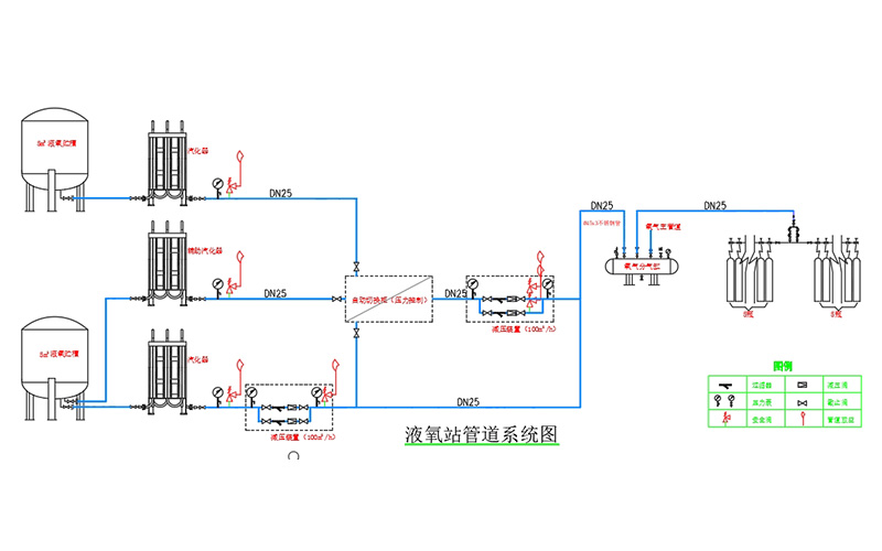 中心液氧站是液氧系统的核心,液氧系统主要由中心液氧站、汽化器、减压、过滤、切换装置等组成。