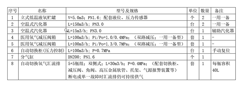液氧系统应配备气体自动监测装置,以保证系统的正常供氧。